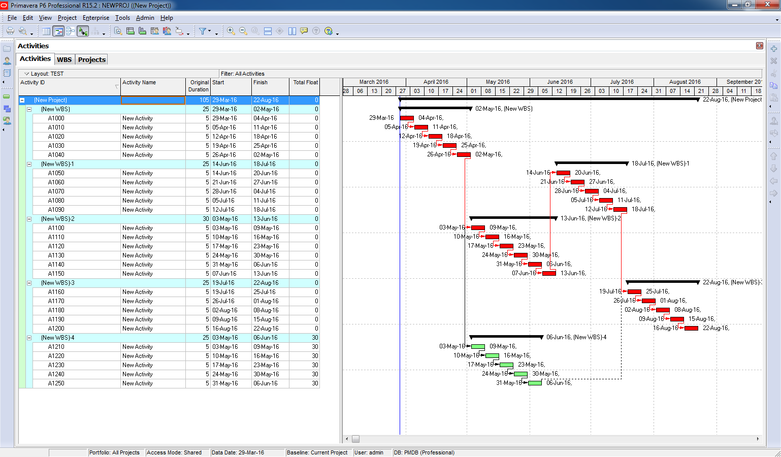 When you collapse activities under their WBS: