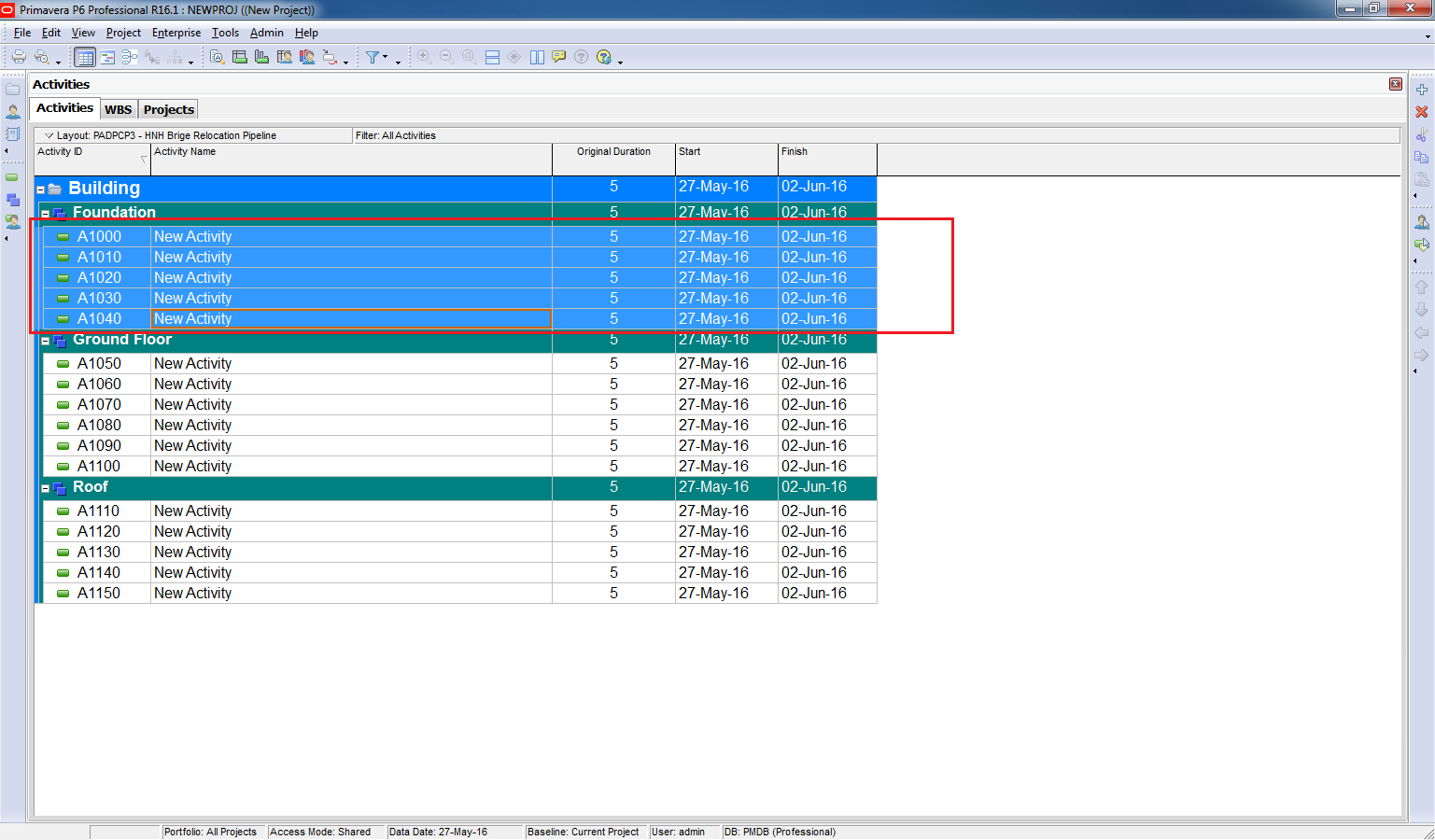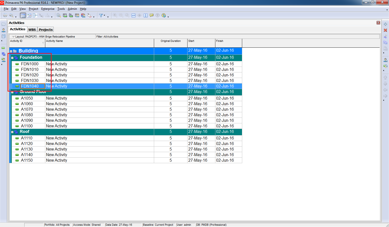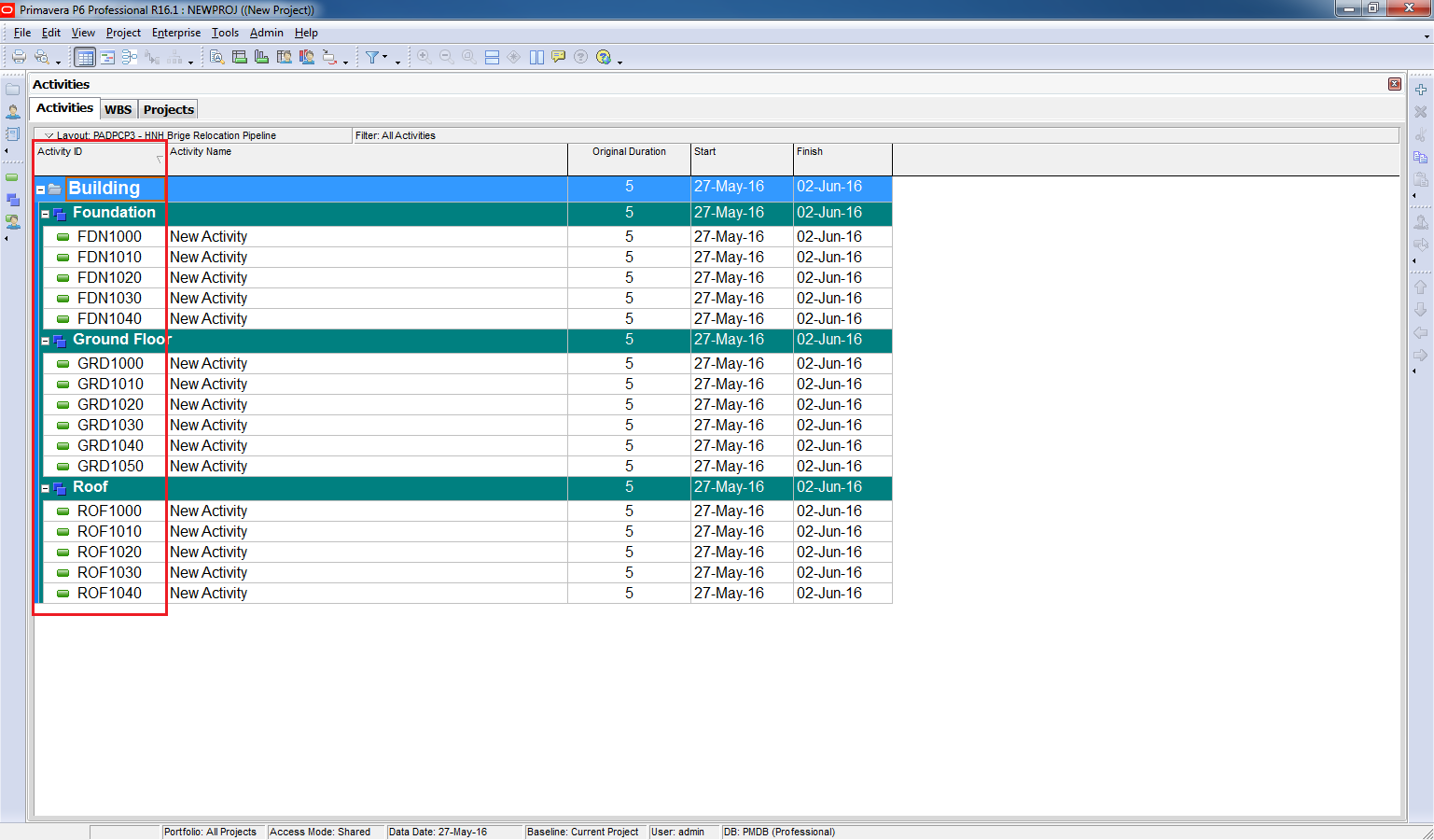 By default, Primavera P6 assigns activity IDs in a generic format like A1000, A1010, A1020, and so on. While functional, these IDs don’t provide much context. A better approach is to make IDs meaningful by including information such as the WBS they belong to.