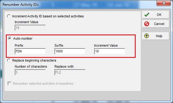 Click OK. Now, the activity IDs have been updated to include the WBS prefix, making them more meaningful.