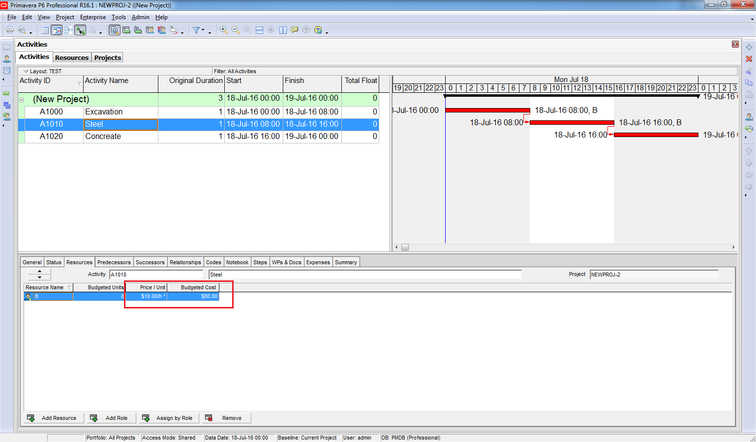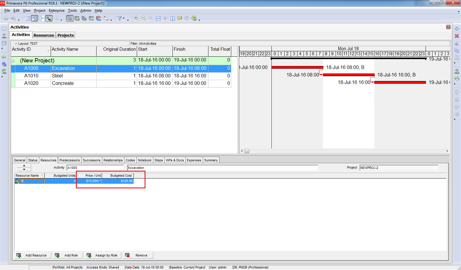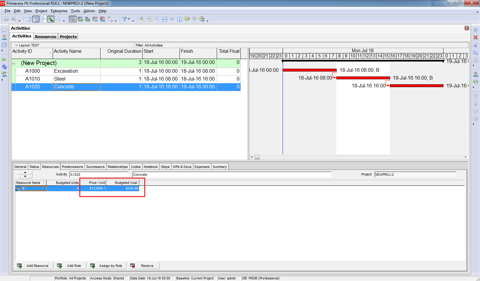 Because each activity starts at a different time, Primavera applies the correct rate: