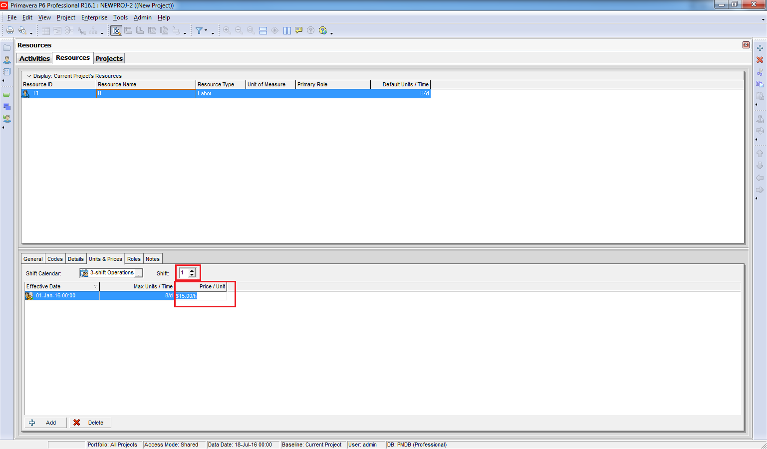 In the Resources window under the Units & Prices tab, you’ll find a field called Shift Calendar. What does it do? Let’s explore.