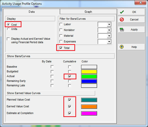 You’ll now see the EVM diagram with cost plotted on the right axis.
