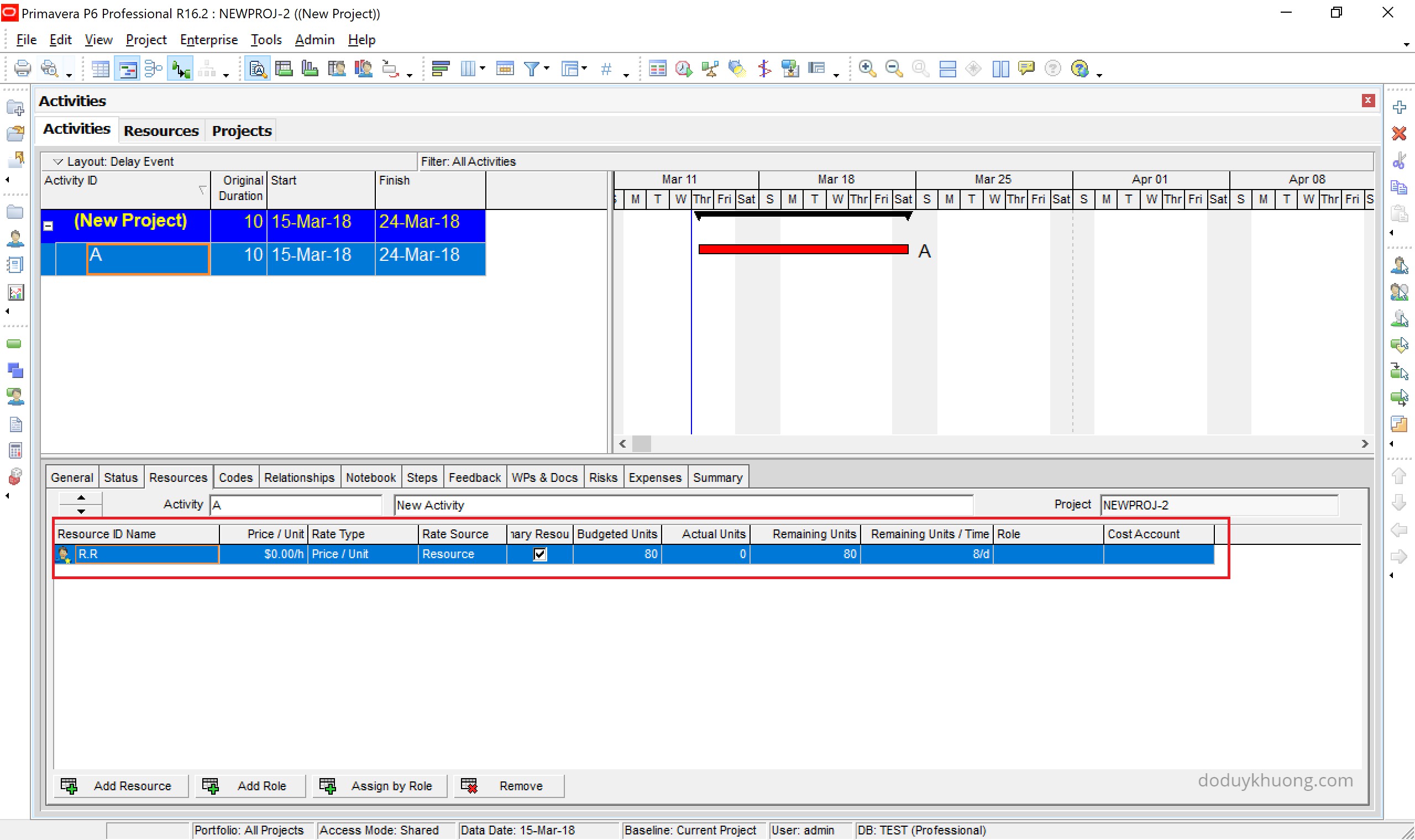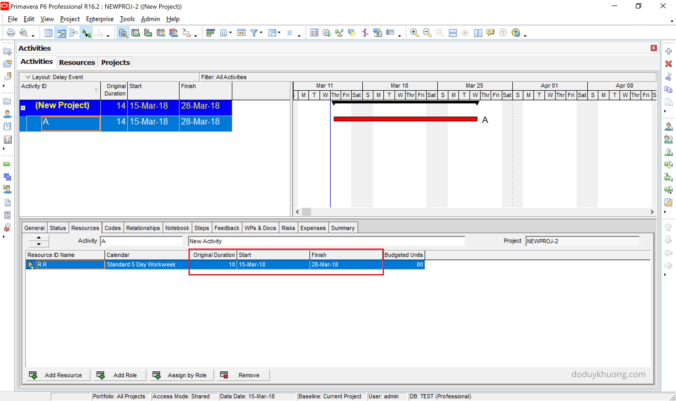 - When a resource is assigned, P6 initially copies the 10-day duration from the activity to the resource.
