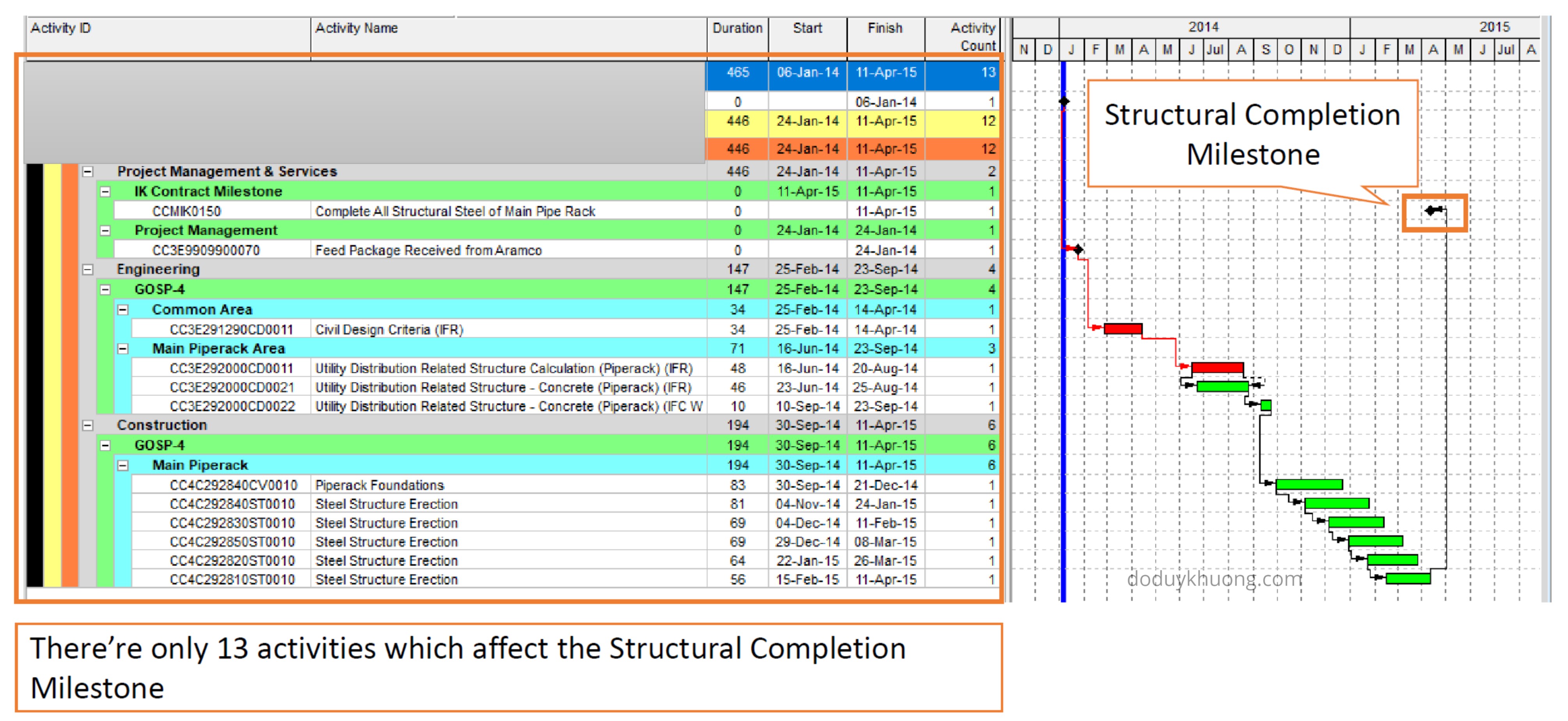 Benefit of using Primavera P6 in Delay Analysis-2: Activities impacting the critical milestones