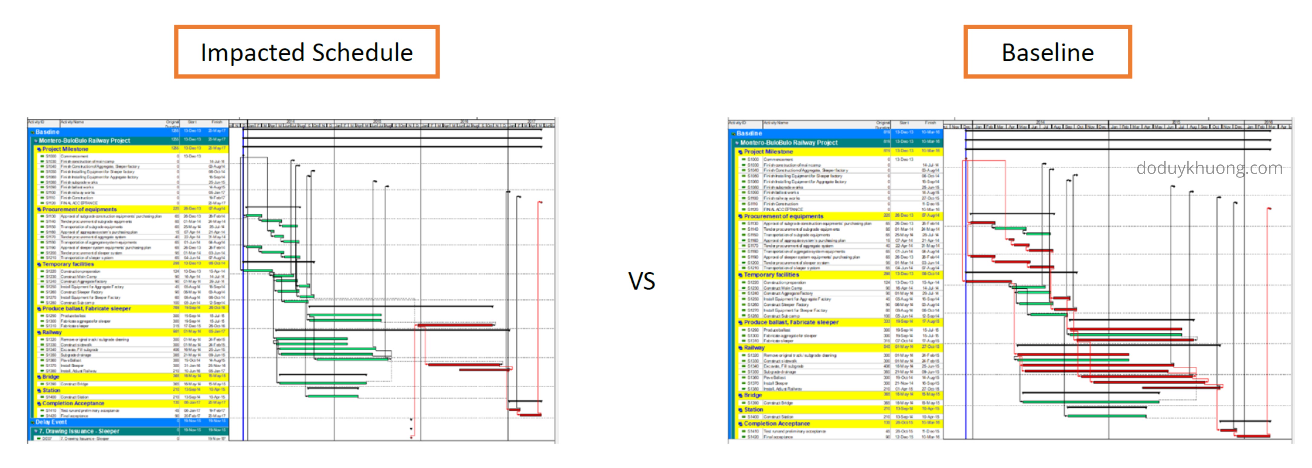 Comparison between the Impacted Schedule and the Baseline Schedule