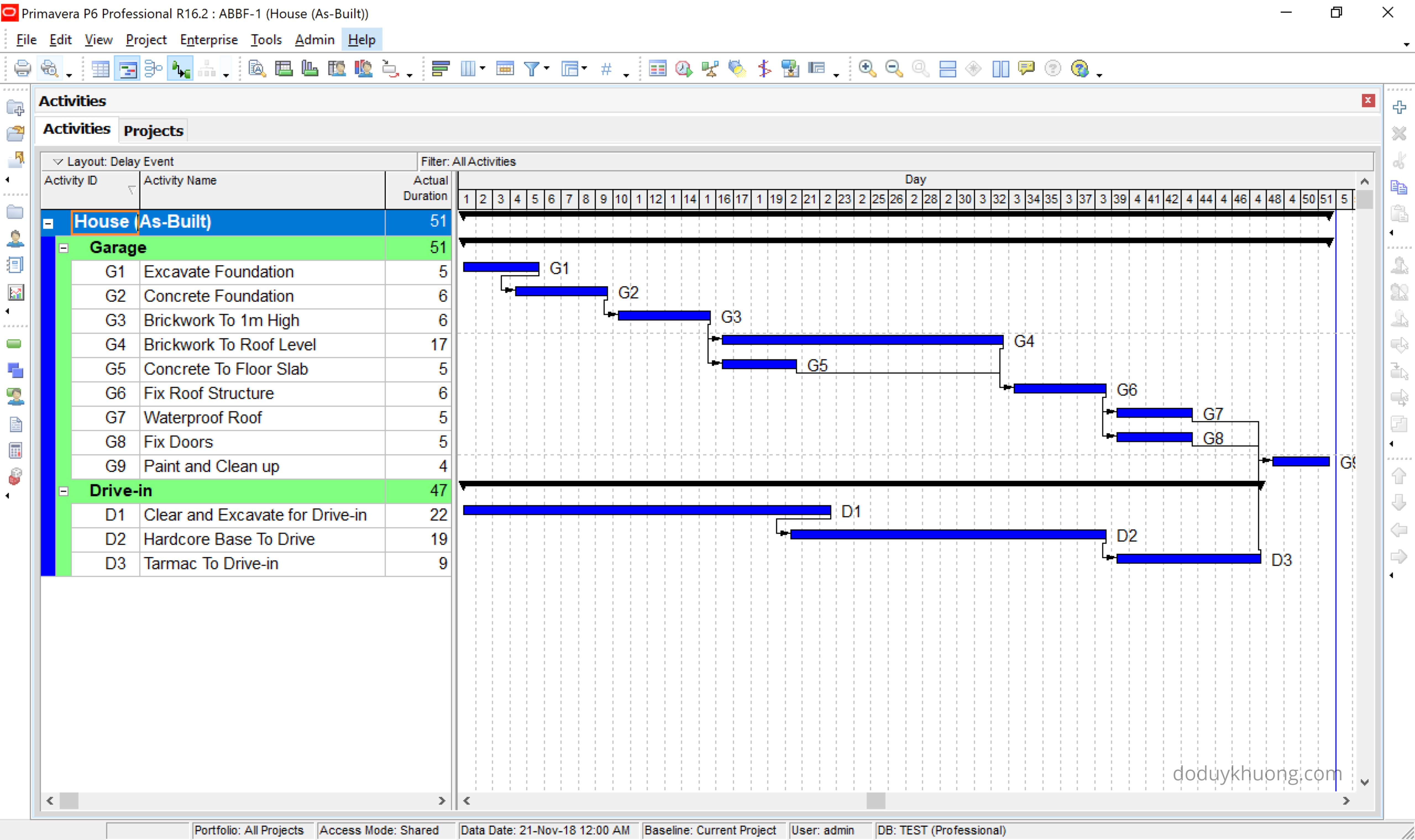 We can see that Start/Finish date (of each activity and whole project) and relationship of As-Built Calculation Schedule now look exactly the same with As-Built schedule.