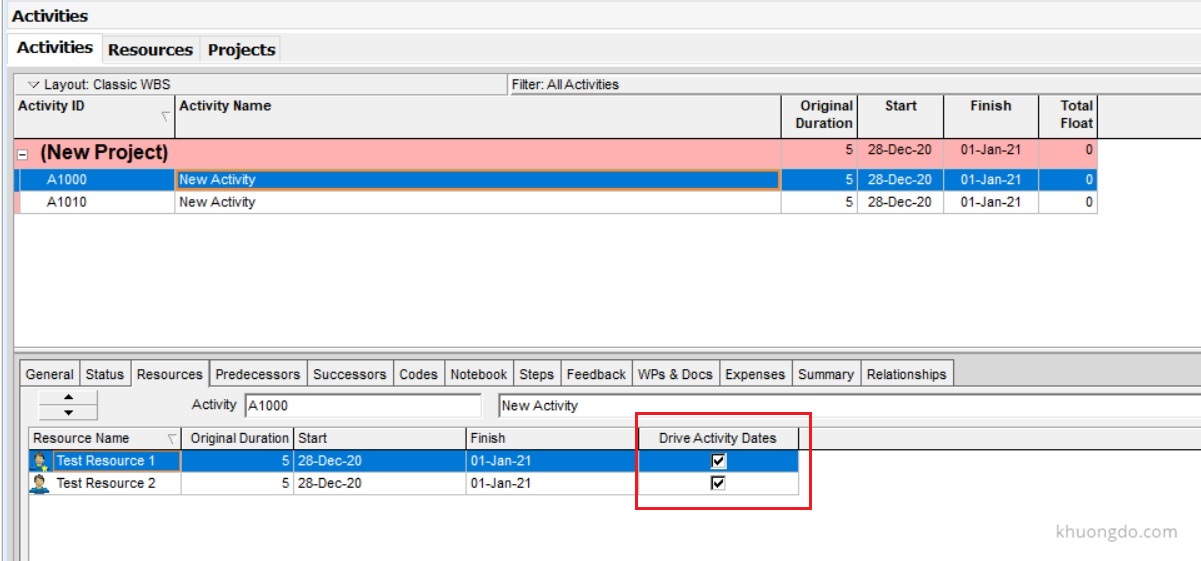 If a driving resource is assigned to the activity, the Remaining Duration is driven by the resource’s duration or actual usage.