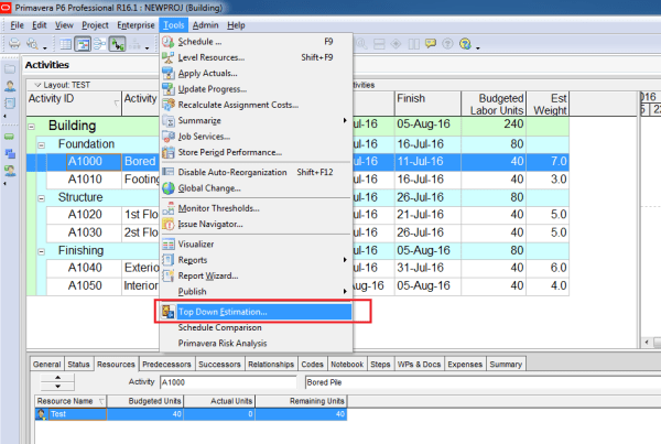 Primavera P6 includes a feature called Top-Down Estimation, which helps calculate estimated labor and non-labor units based on estimation weights. This method can be applied at both the WBS and Activity levels to distribute units more realistically. Scenario We have a simple project where each activity is assigned the resource Test, and by default, each... Continue Reading →