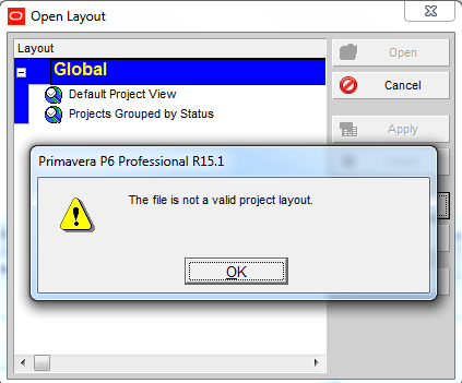 Your colleague send you Primavera XER file and Layout file. After you import project successfully, you click on Layout -> Open -> Import -> Select the layout. And this error appear: You may think "Wow, this layout file must be damaged. I need to tell him to send me again". Wait! It's not because of... Continue Reading →