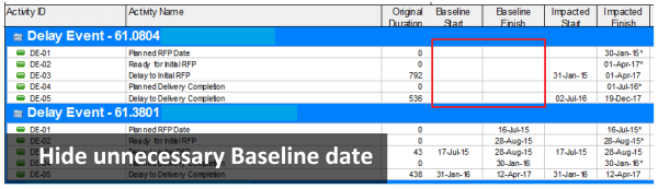 When performing delay analysis in Primavera P6, it’s common to compare the Impacted Schedule with the Baseline Schedule. However, displaying baseline dates in the Delay Event project can be misleading and unnecessary, as they do not represent meaningful data in that context. By default, Primavera P6 displays values in the Baseline Start and Baseline Finish... Continue Reading →