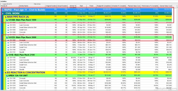 Primavera P6 allows users to view multiple projects simultaneously within the Activity window. In this example, the "Office Building" has been divided into several sub-projects, all organized under an EPS (Enterprise Project Structure) node also named "Office Building". By default, the group settings do not display the EPS title at the top of the activity... Continue Reading →